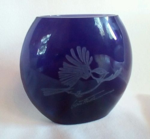Gwen Frostic Bird in Flight Art Purple Glass Vase