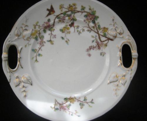 Antique Porcelain Handled Plate Birds Flowers