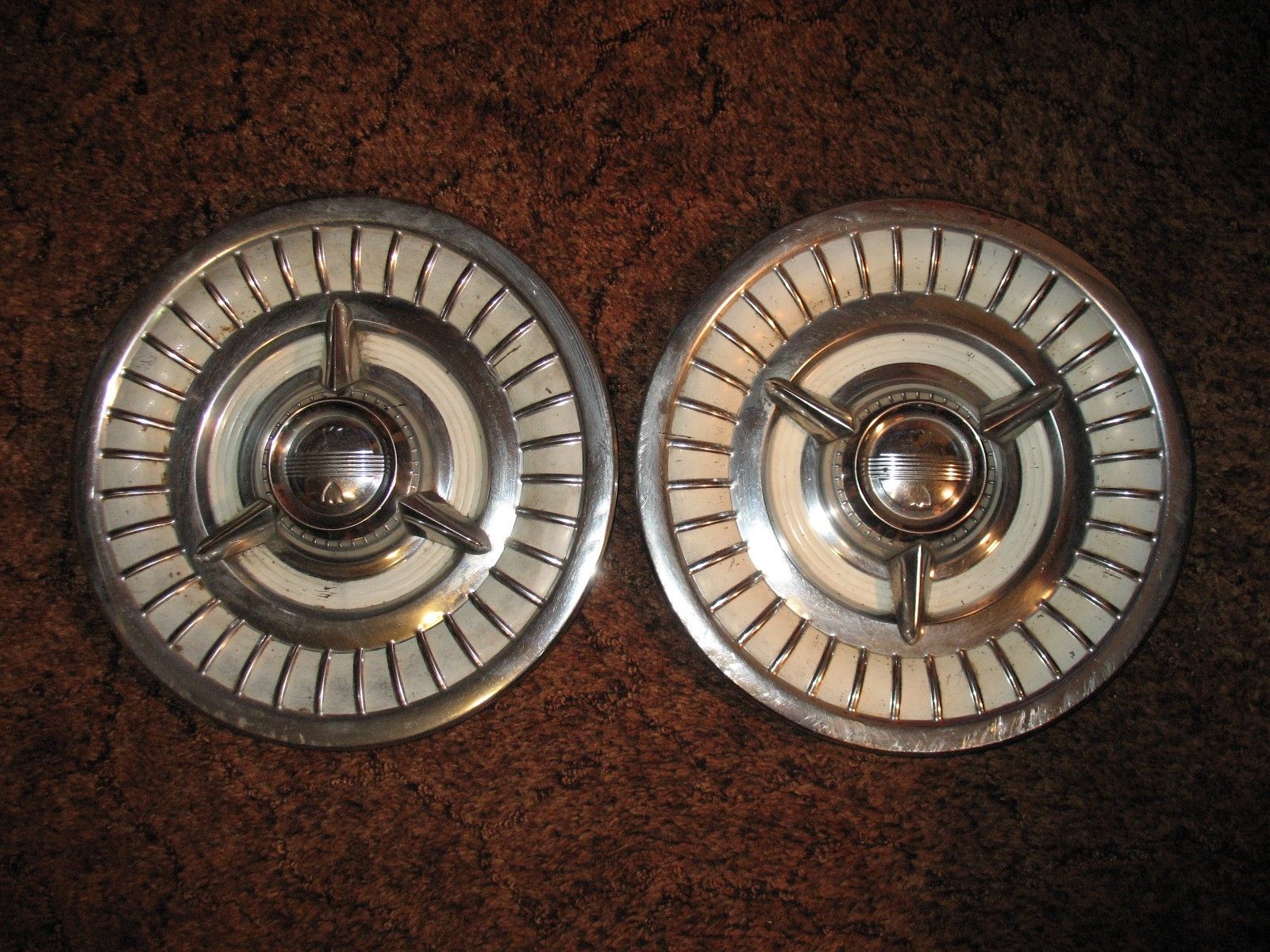 Title (ebay affiliate link): vintage 1950-60s OLDSMOBILE SPINNER HUBCAPS X 2, USED BUT RARE ~LOOK~