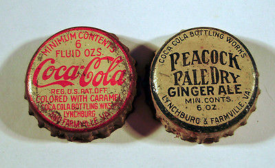 Title (ebay affiliate link): 2 Coca Cola Bottling Wrks Peacock Ginger Ale Lynchburg & Farmville Va Caps