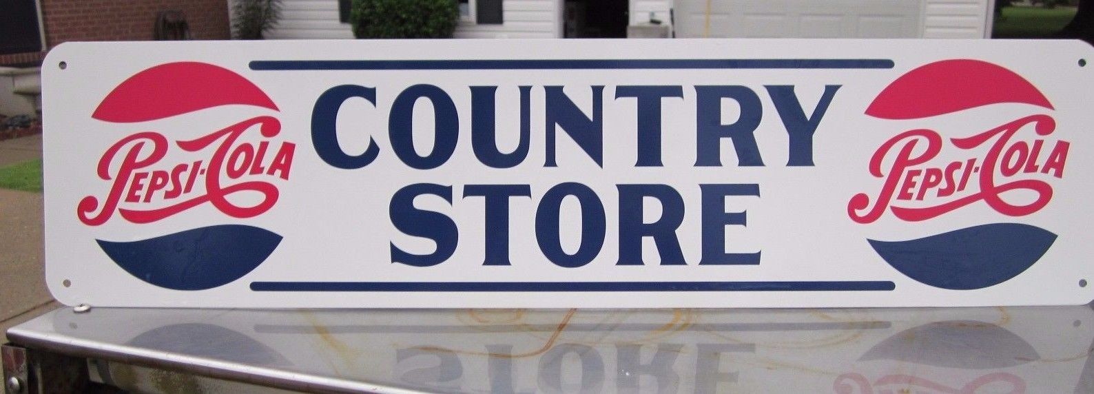 Title (ebay affiliate link): PEPSI - COLA COUNTRY STORE SIGN SODA FOUNTAIN PENNY CANDY PEPSI