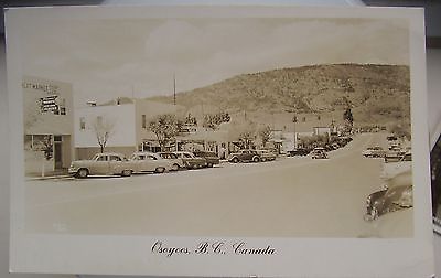 (RP) POSTCARD MAIN STREET OSOYOOS B.C. CANADA,MEAT MARKET VINTAGE CARS 1930/40s
