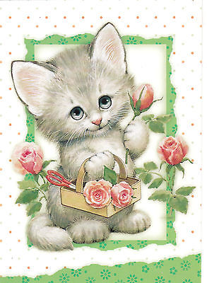 Title (ebay affiliate link): RARE cute Cat with Roses flowers Finnish modern postcard