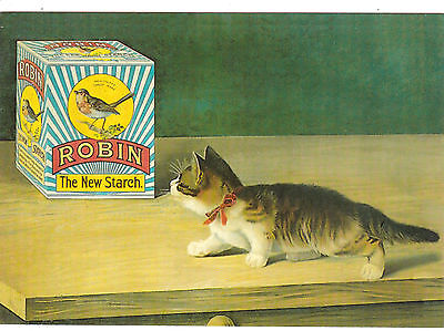 RARE Cat with Robin The New Stratch box repro modern postcard