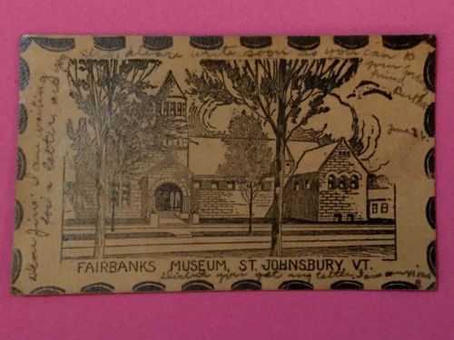 Title (ebay affiliate link): Antique Leather Postcard Fairbanks Museum, St. Johnsbury, VT. Unposted