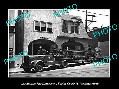 OLD LARGE HISTORIC PHOTO OF LOS ANGELES FIRE DEPARTMENT, ENGINE Co 11 TRUCK 1940