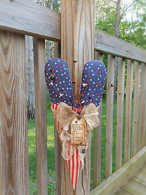 FoLk Art PrimiTive Americana Star Patriotic HEART July 4th FLAG HEART DecoraTion