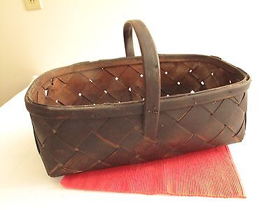 ANTIQUE ASH SPLINT WOOD WOVEN LARGE BASKET CARRIER 20" LONG