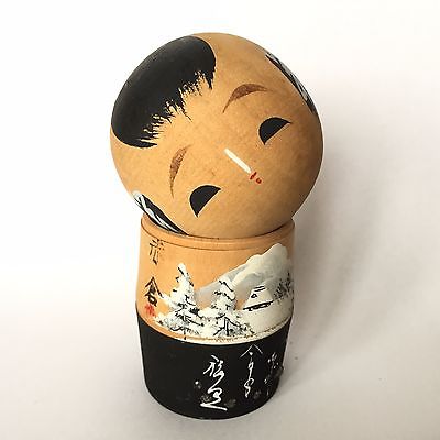 Kokeshi 8.7cm Akakura Beautiful Snow picture Japanese Antique Wooden Doll SKA6