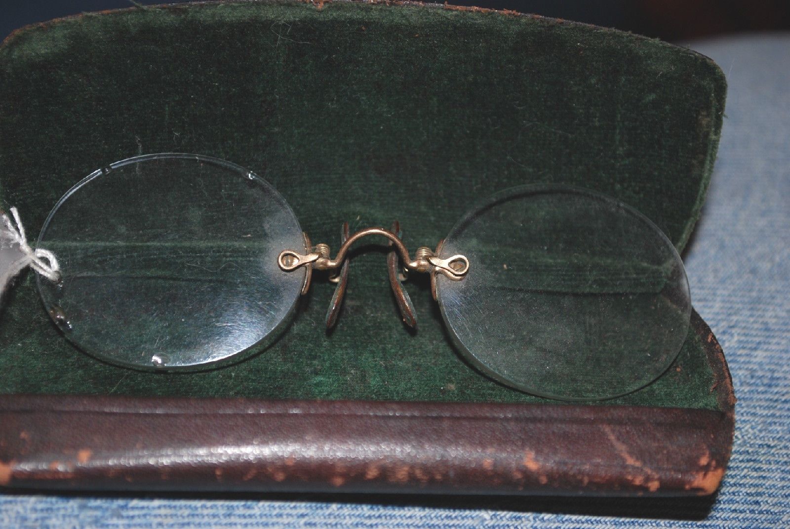 Hard bridge Pince Nez Glasses circa 1840-1880 in original CASE Massachusetts