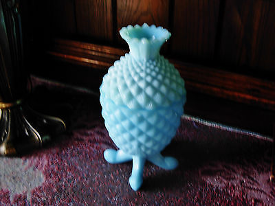 Title (ebay affiliate link): Fenton? Turquoise Blue Milk Glass sawtoot Pedestal Compote