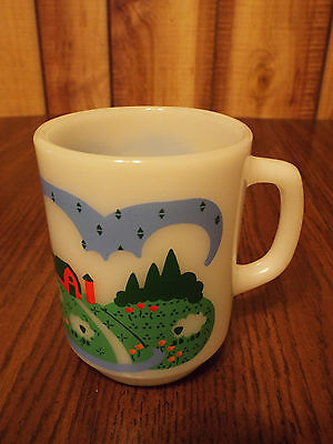 Anchor Hocking Oven-Proof Farm Scene Sheep Milk Glass Coffee Cup Mug USA