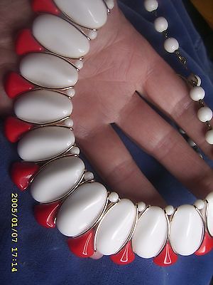 ANTIQUE VINTAGE GERMANY MILK GLASS & RED GLASS RETRO CABOCHON BIB NECKLACE!