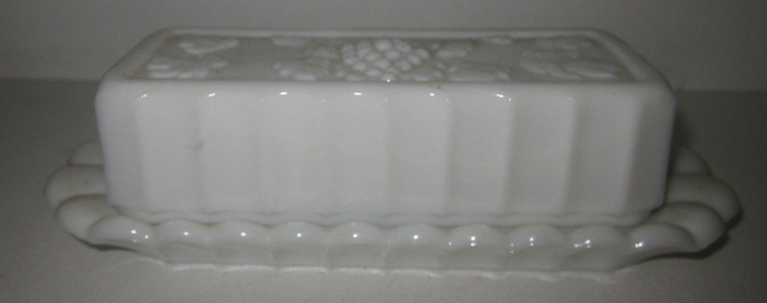 Vintage WESTMORELAND Marked BUTTER DISH & COVER PANELED GRAPE MILK GLASS