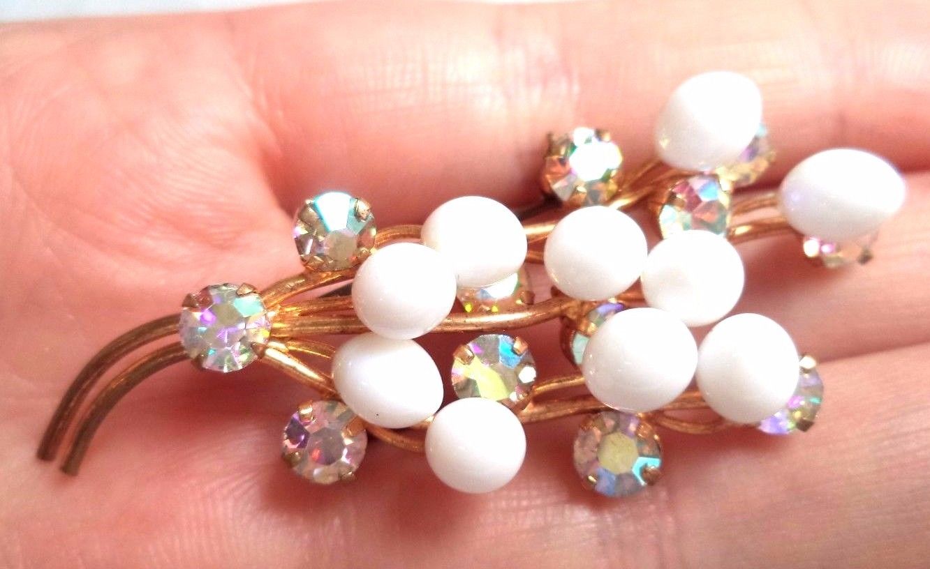 Title (ebay affiliate link): STUNNING VINTAGE ESTATE GOLD TONE SIGNED TRIAD MILK GLASS BROOCH!!! 6429W