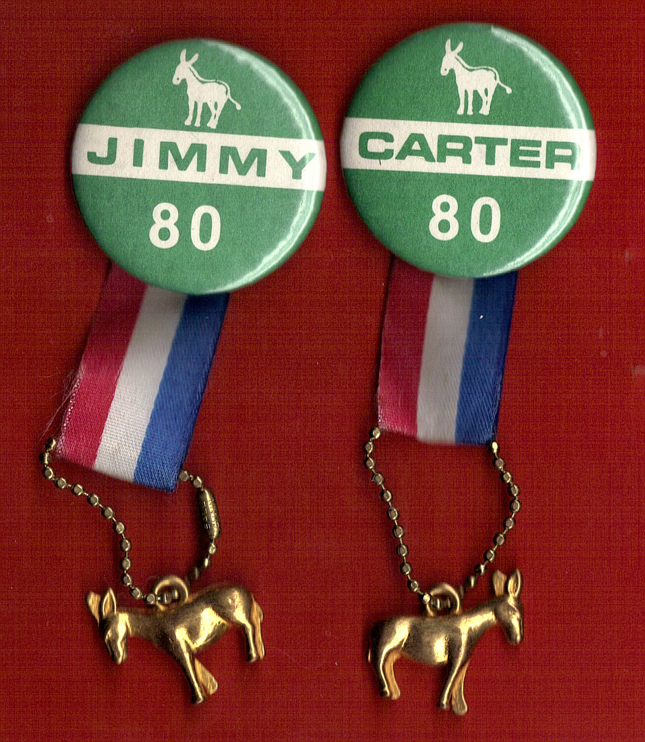 1980 Pair of Jimmy Carter 1-3/4" button 5" length / Campaign Buttons & Atachment