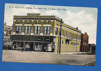 Title (ebay affiliate link): S.H. Kress & Co Building Fire Station No. 1 In Rear Enid Oklahoma 1910 Postcard
