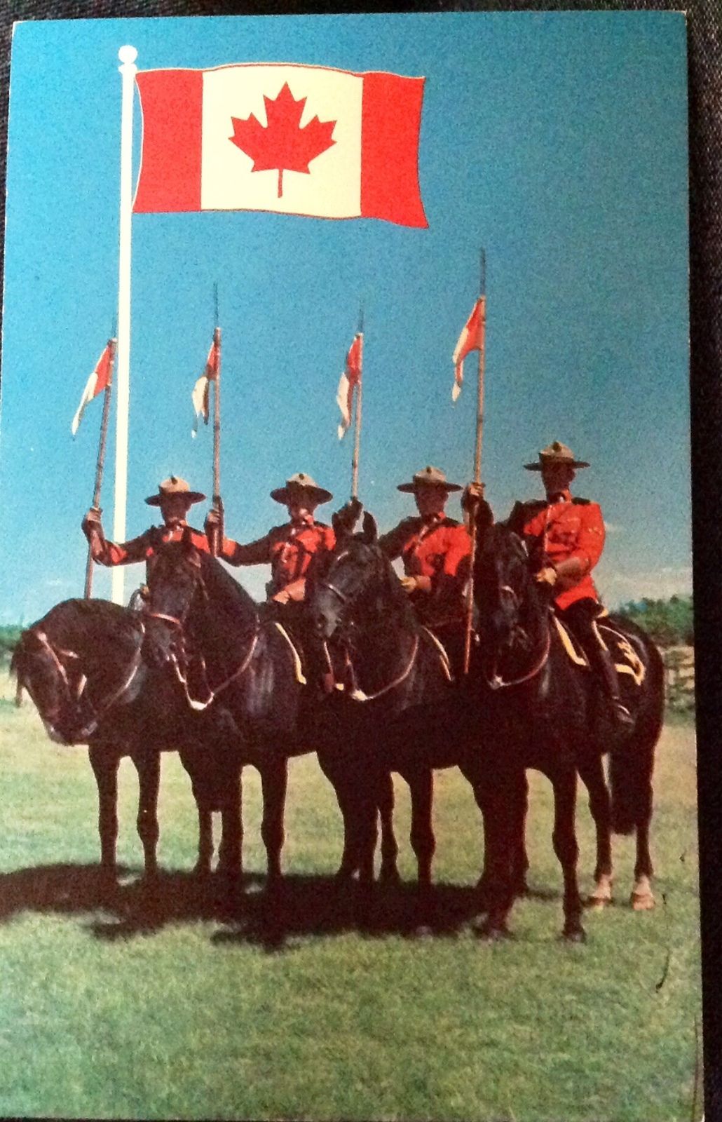 Title (ebay affiliate link): Royal Canadian Mounted Police with New Flag of Canada Vintage Postcard