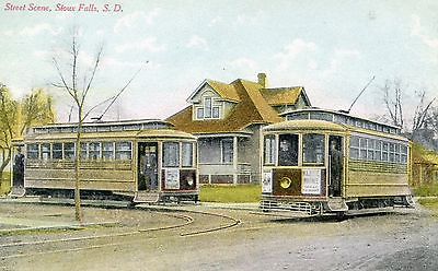 Title (ebay affiliate link): Sioux Falls South Dakota SD, 1910's postcard, Street Scene with 2 Streetcars