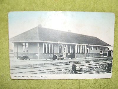 Vintage Postcard Omaha Road Depot. Pipe Stone Mn.