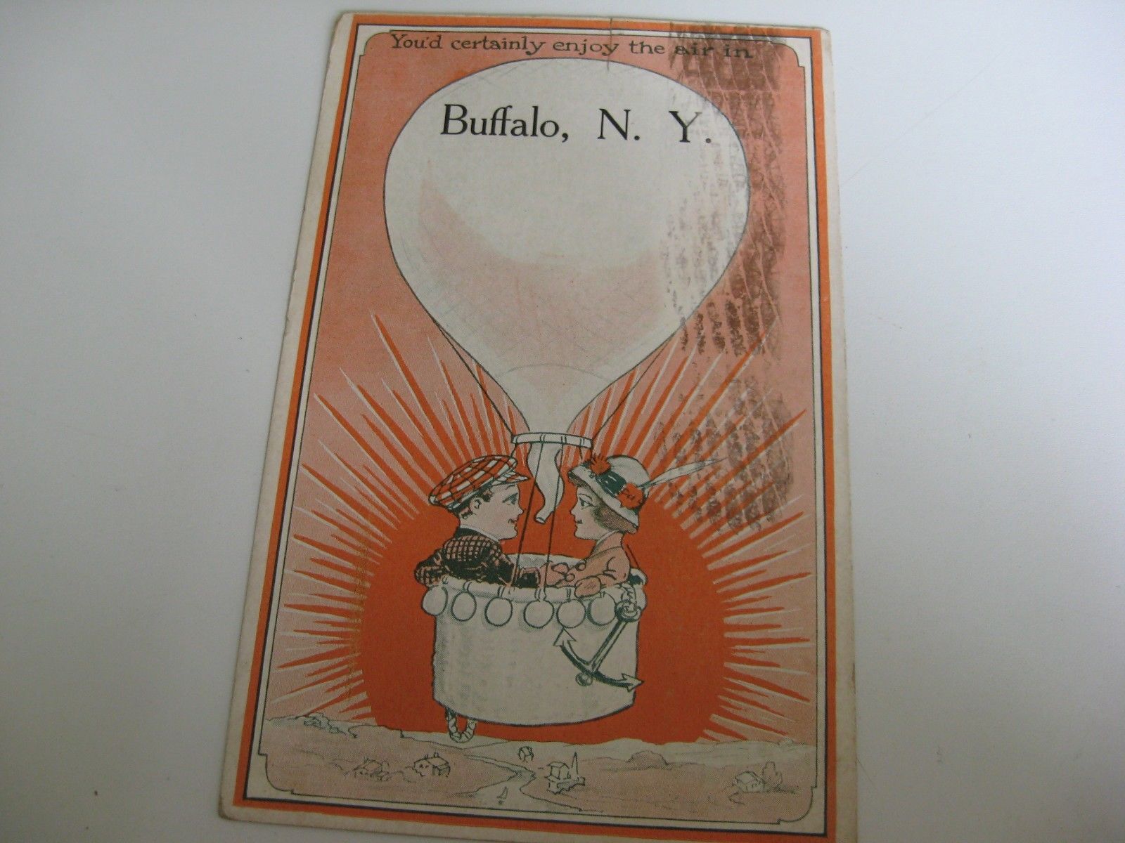 VINTAGE HOT AIR BALLOON POST CARD 1918 U.S.A. BUFFALO,N.Y.