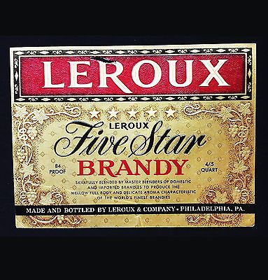 Title (ebay affiliate link): Rare Vintage Leroux Five Star Brandy Label Etiquette Philadelphia, PA.
