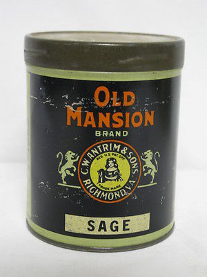 Title (ebay affiliate link): Litho Tin OLD MANSION Richmond VA Coffee Tea Sage Can Orig Lid NICE Scarce Spice