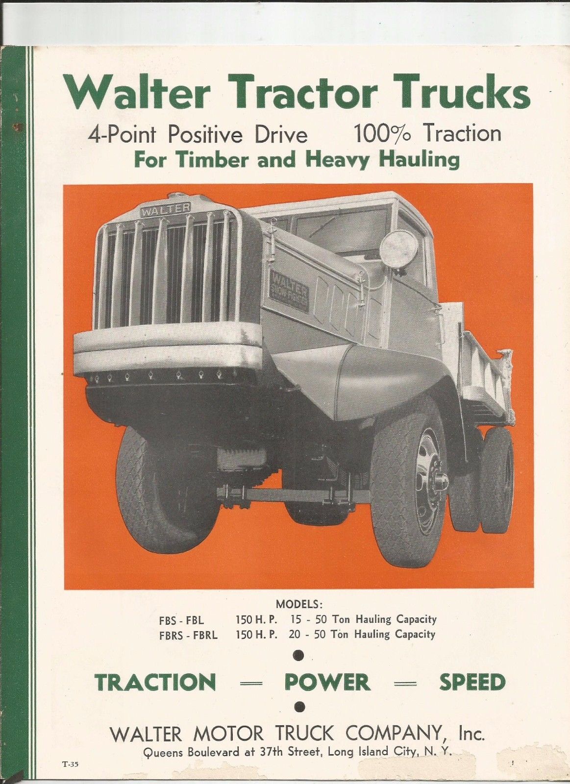 Title (ebay affiliate link): 1950's Walter Tractor Trucks Long Island City NY Foldout Brochure Timber Hauling