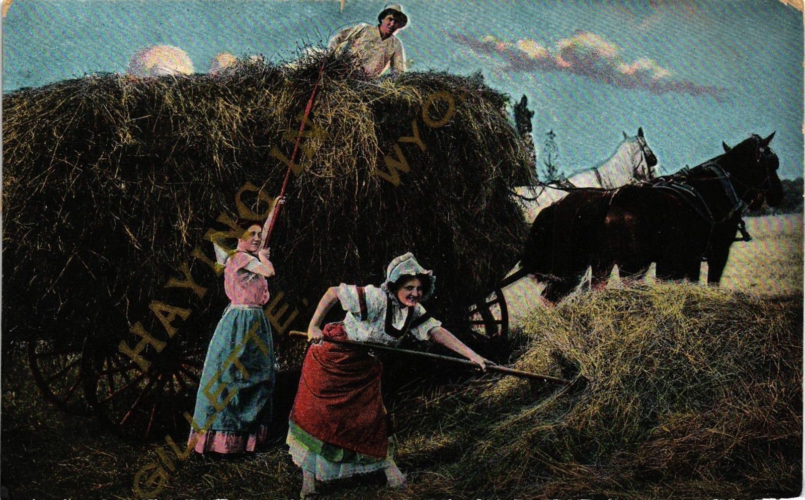 Title (ebay affiliate link): DR JIM STAMPS US GATHERING HAY HORSE WAGON POSTCARD GILLETTE, WYOMING