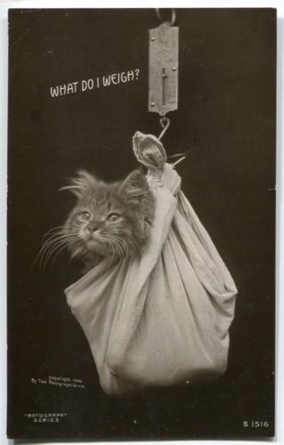 Title (ebay affiliate link): Long Haired Cat Kitty on Scale What Do I Weigh RPPC Postcard 1908 060916A