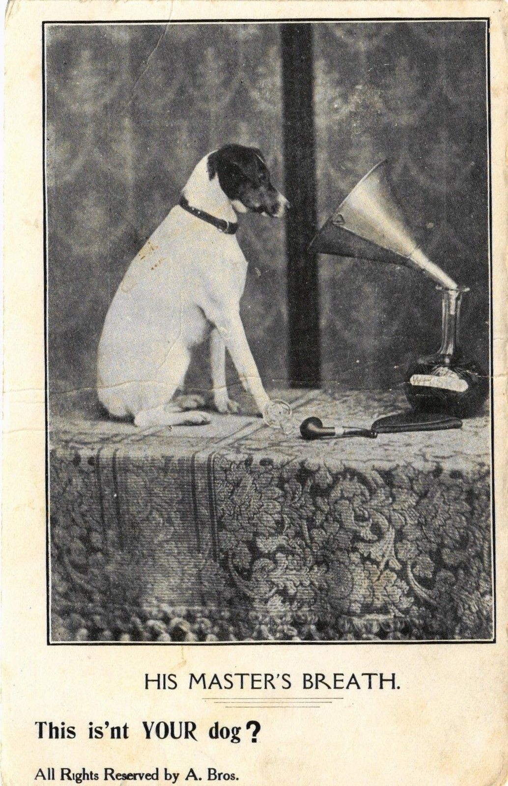 Title (ebay affiliate link): DR JIM STAMPS US HIS MASTER'S BREATH DOG & PHONOGRAPH POSTCARD