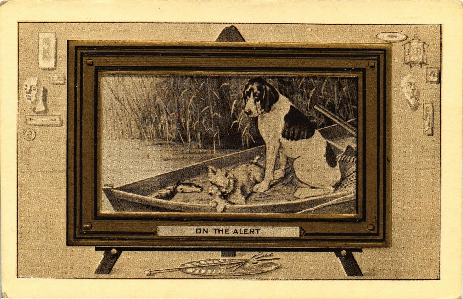 Title (ebay affiliate link): DR JIM STAMPS US ON THE ALERT DOGS IN BOAT PICTURE FRAME POSTCARD
