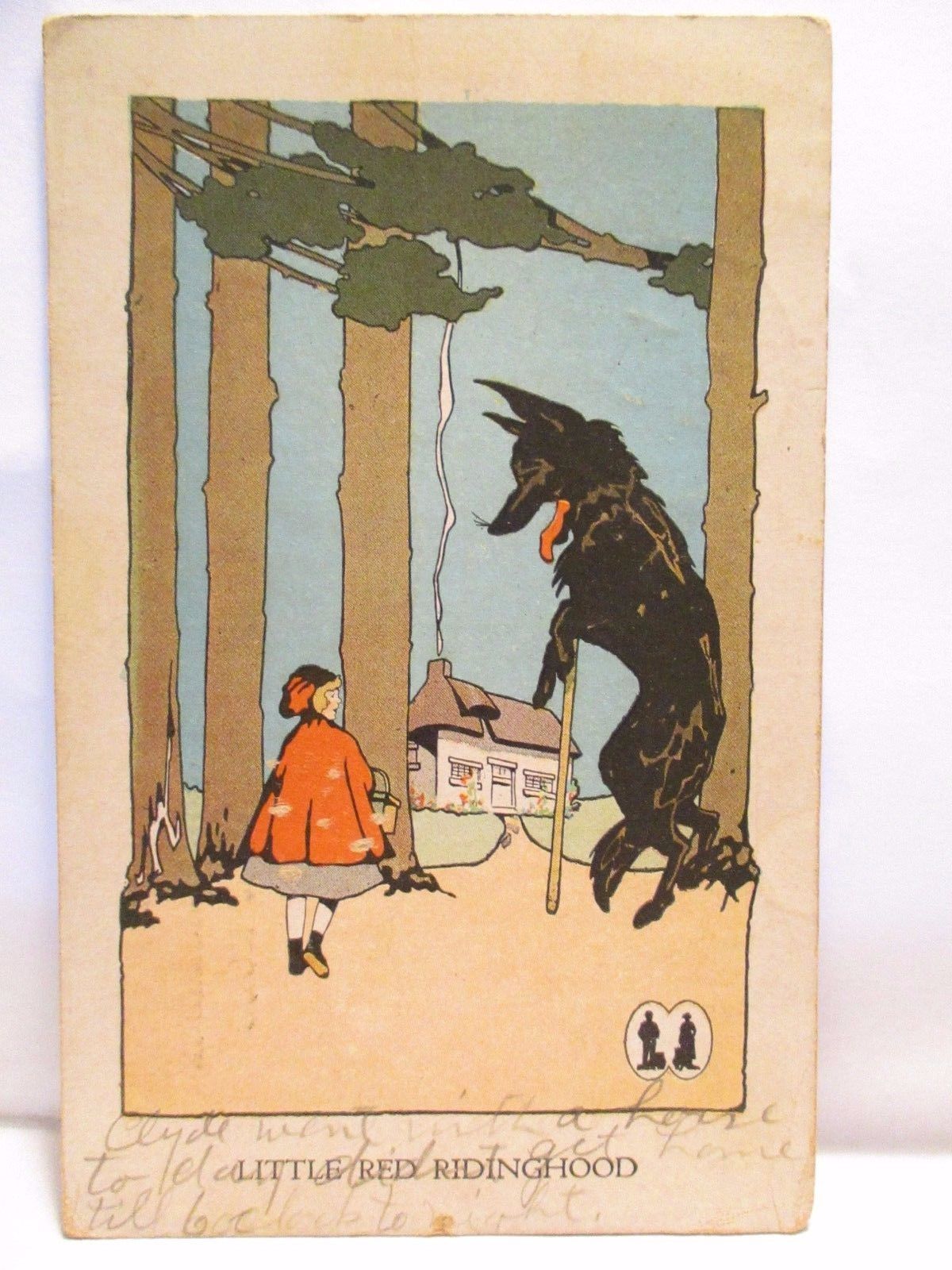 Title (ebay affiliate link): 1921 WALK OVER SHOES ADV POSTCARD LITTLE RED RIDING HOOD COON & CO ROCKFORD MI