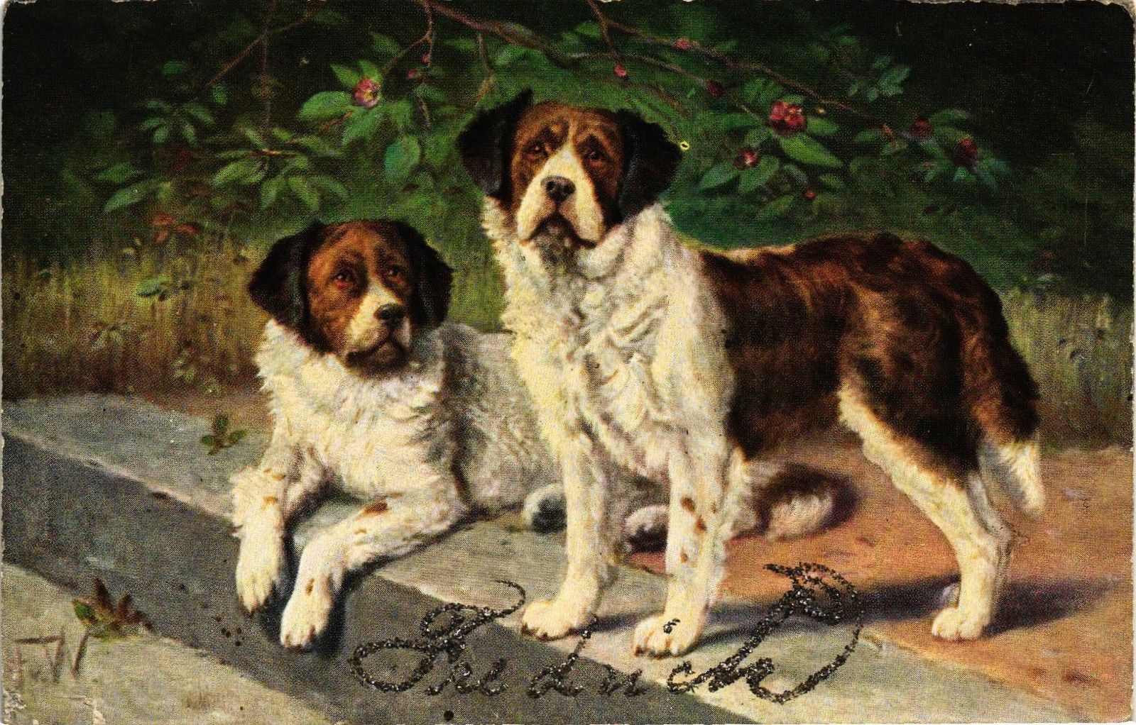 DR JIM STAMPS US TWO DOGS GLITTERED POSTCARD