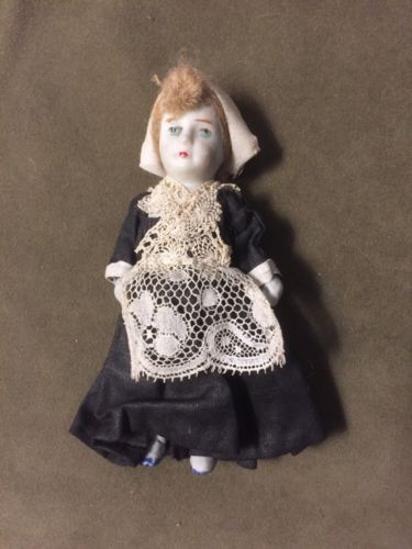 Antique Vintage 4 1/2" Dutch Bisque Doll With Hair
