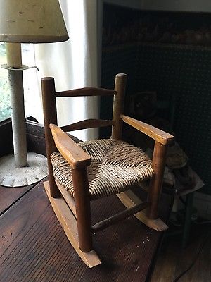 VINTAGE PRIMITIVE wood doll chair- woven seat MUST SEE