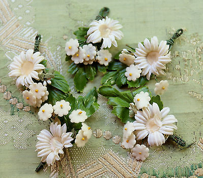 VINTAGE TINY MILLINERY FLOWER TRIM LOT FORGET ME NOT DAISY FRENCH DOLL HAT