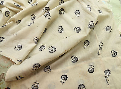ANTIQUE WOOL CHALLIS VICTORIAN DRESS PANEL 36X19" INDIGO BLUE FLOWER FRENCH DOLL