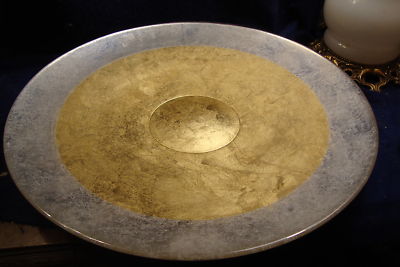 GLASS 16 INCH ITALY SILVER AND GOLD OVERLAY CAKE PLATE