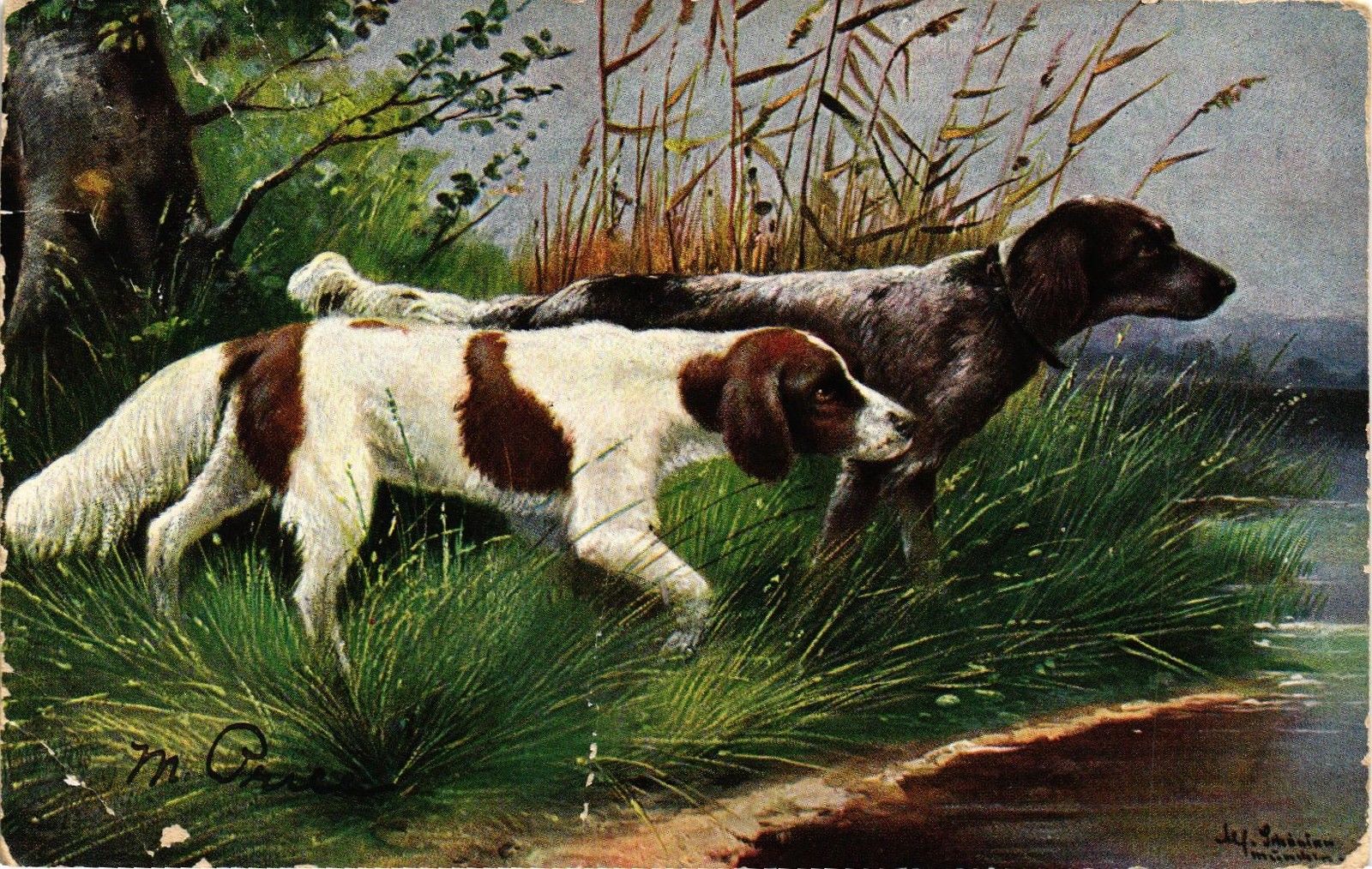 DR JIM STAMPS US HUNTING DOGS WASHINGTON ILLINOIS POSTCARD MADE IN GERMANY