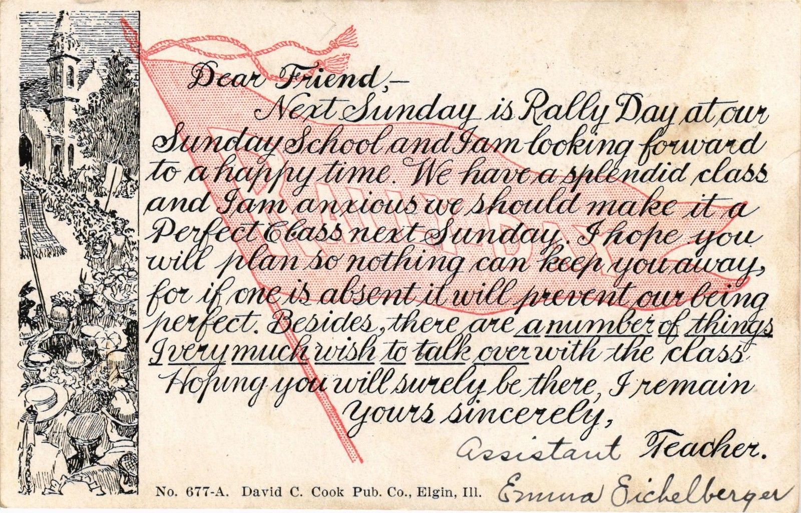 Title (ebay affiliate link): DR JIM STAMPS US SUNDAY SCHOOL RALLY DAY POSTCARD ILLINOIS