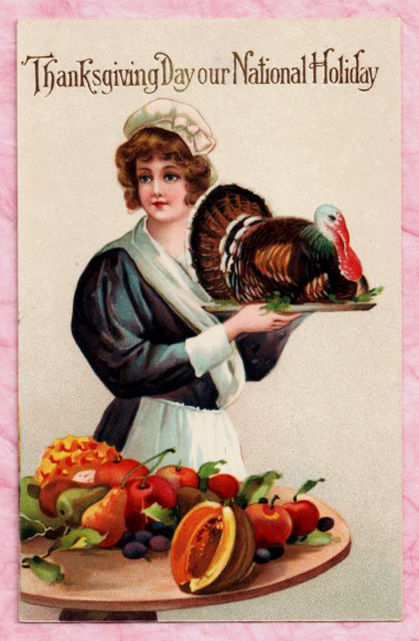 Title (ebay affiliate link): LOVELY GLOSSY GEL SURFACE TO THANKSGIVING Postcard LADY SERVES UP TURKEY DINNER