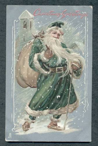 Title (ebay affiliate link): SANTA IN GREEN ROBE VINTAGE CHRISTMAS POSTCARD TUCK