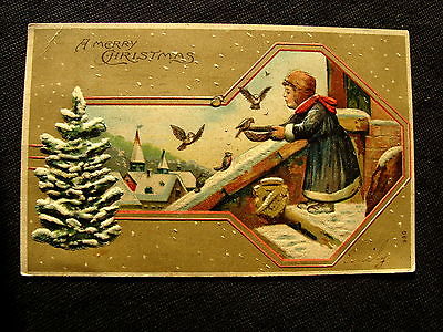 Title (ebay affiliate link): Girl In Winter Coat & Hat Feeds Birds Christmas Tree Nice Embossing Postcard