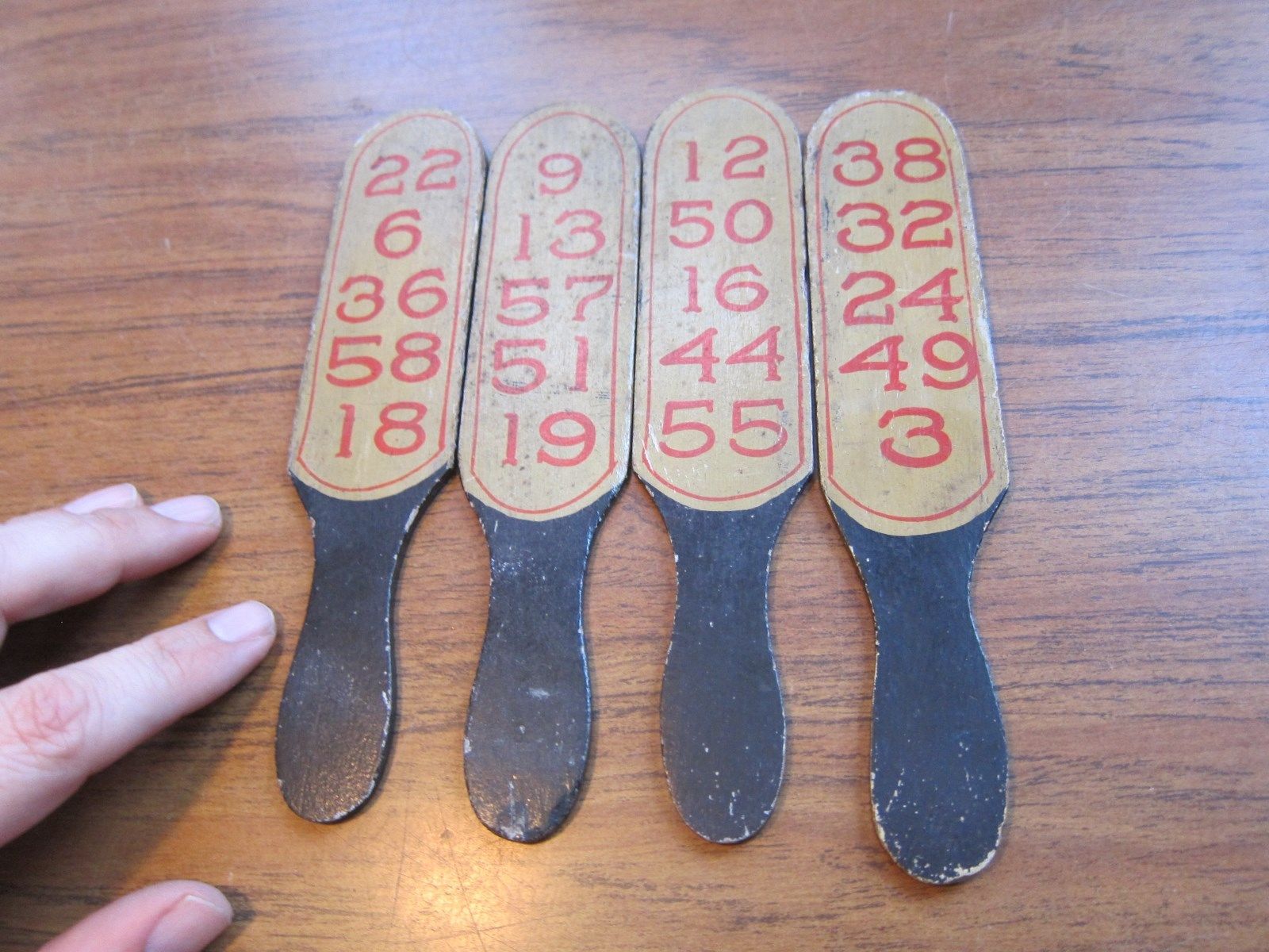 4 antique numbered sticks for eye doctor optometrist testing? unusual, 7" long