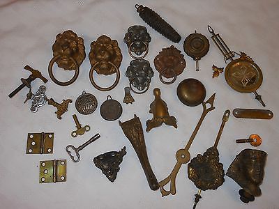 Lot 27 Antique Clock Parts Pine Cone Pendulum Keys Lion Head Handles Brass Dial