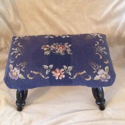 Title (ebay affiliate link): Antique Vintage Wooden Floral Needlepoint Embroidery Foot Rest Stool Ottoman