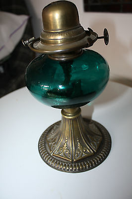 Title (ebay affiliate link): BEAUTIFUL VICTORIAN SMALL BRASS OIL LAMP WITH AQUA BLUE GLASS RESERVOIRE