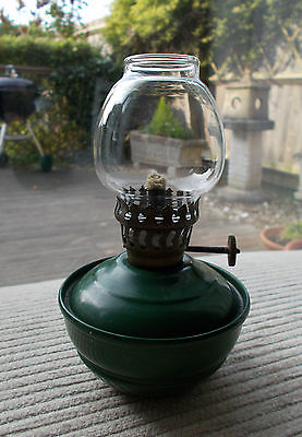 VINTAGE SMALL GREEN ENAMEL NURSERY KELLY PIXIE PARAFFIN OIL LAMP