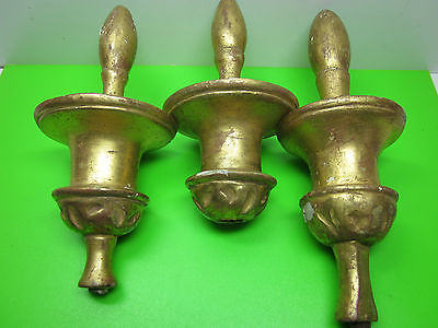 3 ANTIQUE OLD VINTAGE GILDED WOOD FINIALS LONG CASE DUTCH CLOCK MIRROR FURNITURE
